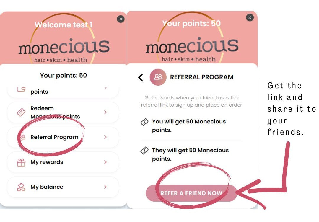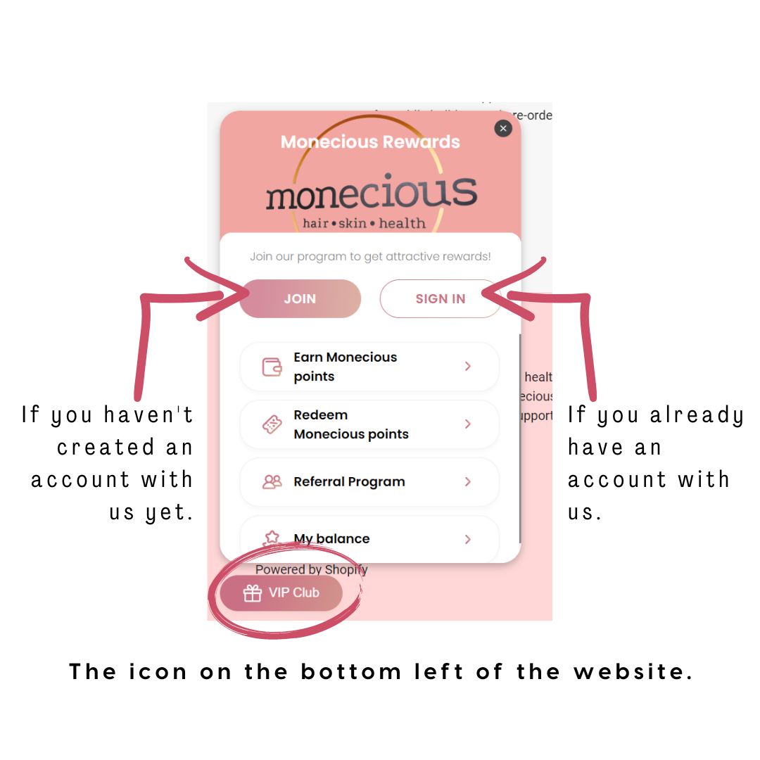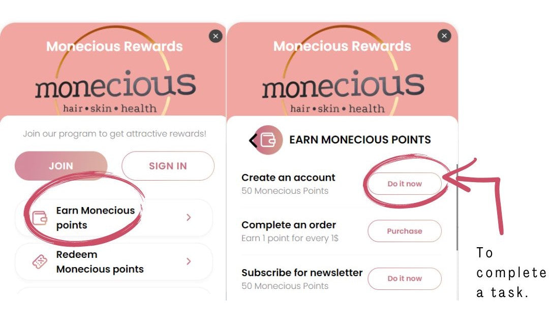Go to Earn Monecious points tab and click the button to do the desired tasks to earn points.